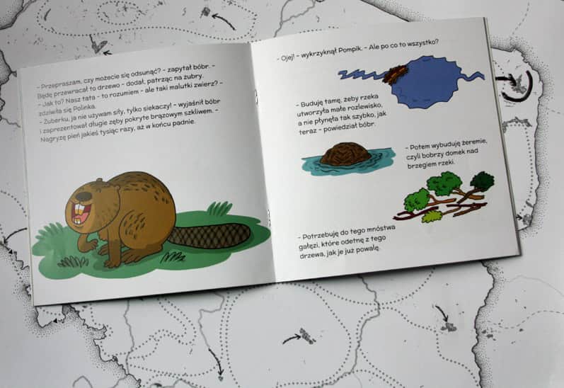 Przewodnim tematem książeczki okazuje się pomoc i współpraca. Bóbr pomoże m.in. żabom, wydrom i łabędziom. Żubry pomogą bobrowi, chociaż oczywiście nie dadzą rady przegryźć pnia drzewa. W rezultacie powstanie piękna „bobrzożubrza” tama!