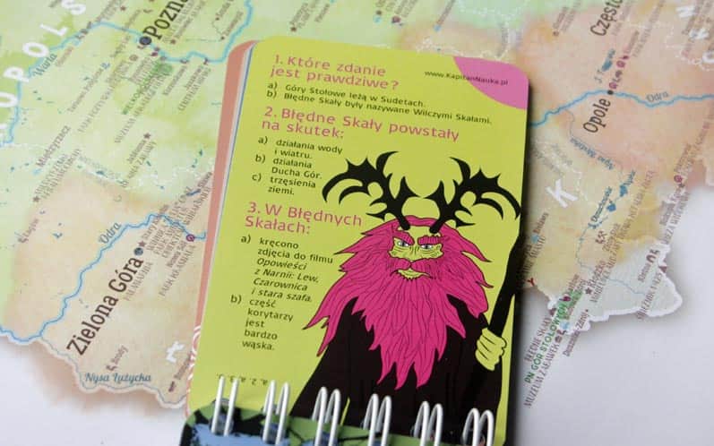 * albo „od tyłu”: czyli najpierw sprawdzamy swoją wiedzę w 162 pytaniach z kilkoma odpowiedziami do wyboru, a potem doczytujemy na dany temat ciekawostki na odwrocie.