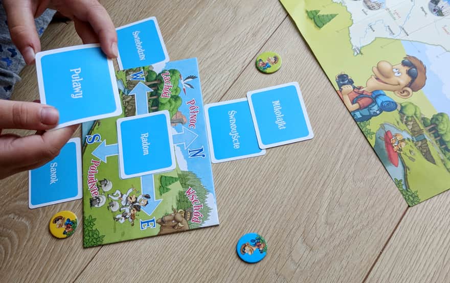 Jeśli będziemy grać w grupie o mieszanym stopniu orientacji na mapie (np. rodzice i dzieci, młodsze i starsze rodzeństwo), przewaga „tych co wiedzą lepiej” może okazać się bardzo frustrująca dla pozostałych. Postanowiliśmy nie losować, ale wybierać karty do rozgrywki: np. 5 znanych miejsc i 5 trudniejszych, albo po jednej z każdego regionu Polski, albo na odwrót: celowo tylko z jednego, wybranego regionu. Następnie odszukujemy wszystkie z nich na dołączonej do gry mapie, przyglądamy się, porównujemy położenie względem siebie. Mapę chowamy i przystępujemy do rozgrywki – teraz gra sprawdzi ona przede wszystkim naszą pamięć, a nie nabytą wiedzę, czy umiejętność blefowania..