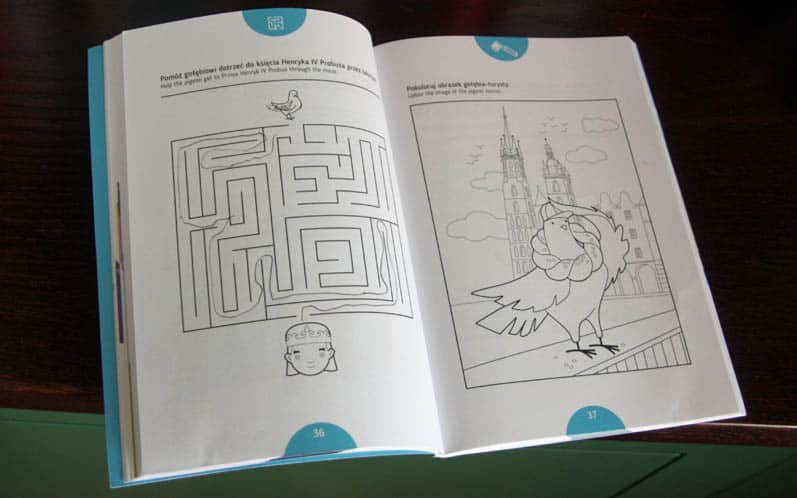 Każdy rozdział to jednak przede wszystkim propozycja spaceru. Na początek otrzymujemy czytelną, kolorowa mapkę z ponumerowanymi najciekawszymi punktami trasy. W opisie znajdziemy zarówno ciekawostki, informacje praktyczne (np. godziny otwarcia), jak i zadania do wykonania (np. sprawdzenie ile czasu zajmuje obiegnięcie Barbakanu). Treść przeplatana jest legendami i zabawnymi, kolorowymi ilustracjami. Na końcu każdego z rozdziałów dzieci znajdą też kilka graficznych zagadek (kolorowanki, labirynty, zagadki).