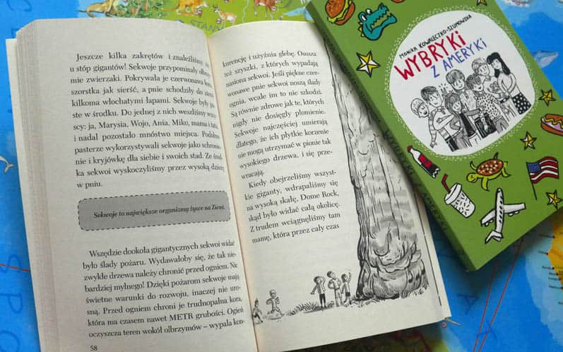 Narratorka, najmłodsza z rodzeństwa: Zosia, opowiada nam o wyjeździe do Stanów Zjednoczonych Ameryki Północnej. W krótkich rozdziałach – „migawkach z podróży” – przy okazji śledzenia przygód rozbrykanego rodzeństwa poznamy parę angielskich słów i zwrotów (uwaga: bez tłumaczenia!), ale przede wszystkim odwiedzimy kilka niezwykłych miejsc: m.in. Zatokę Meksykańską i Wielki Kanion rzeki Kolorado, zobaczymy sekwoje, na kempingu w Crater Lake National Park spotkamy niedźwiedzicę, a nawet zwiedzimy więzienie Alcatraz.