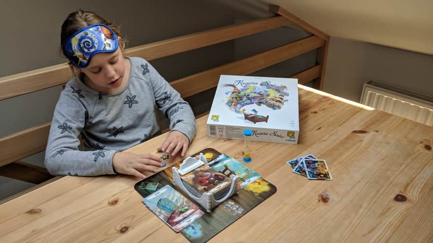 Choć wiek na pudełku to 8 lat (i jest on adekwatny biorąc pod uwagę zasady gry zawarte w instrukcji) zakup gry poleciłabym także rodzicom przedszkolaków. W grze mamy przepiękną planszę z bajecznie ilustrowanymi kartami z hasłami, które trzeba odgadnąć, klepsydrę i opaskę na oczy - mając taki zestaw spokojnie możemy bawić się po swojemu, tworząc własne, prostsze zasady.