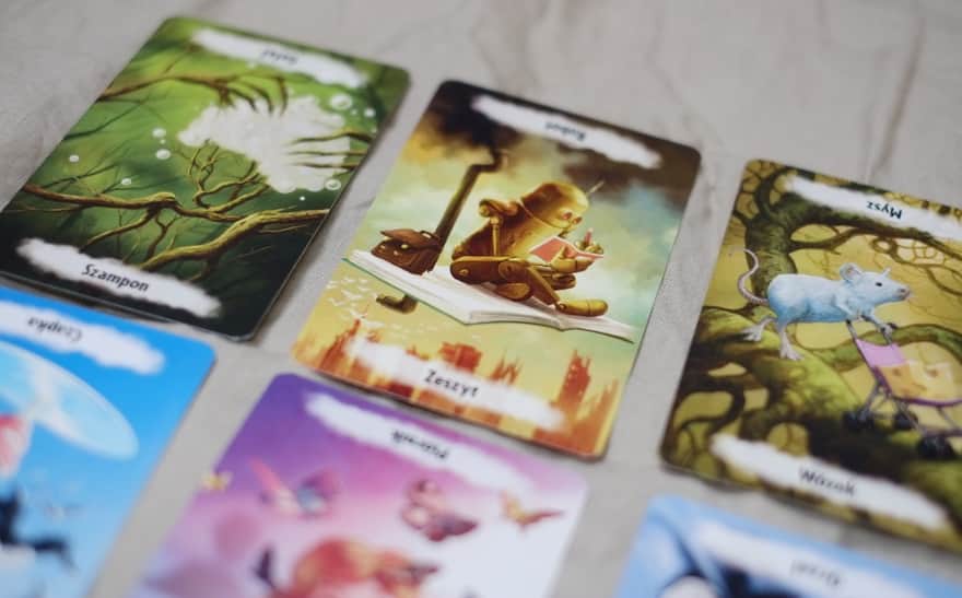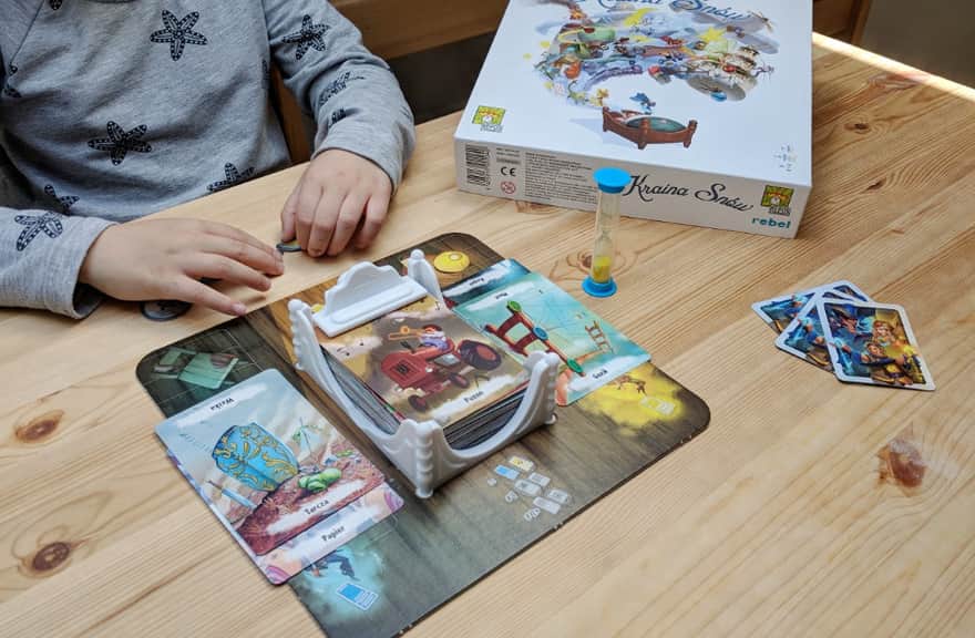 Dzięki wydawnictwu Rebel zamiast puchatej kołdry i poduchy w objęcia morfeusza przeniesie nas plansza z białym łóżeczkiem, w którym niczym gruby materac ukryta jest równie gruba talia kart z ilustracjami pełnych fantazji i sennych wizji.