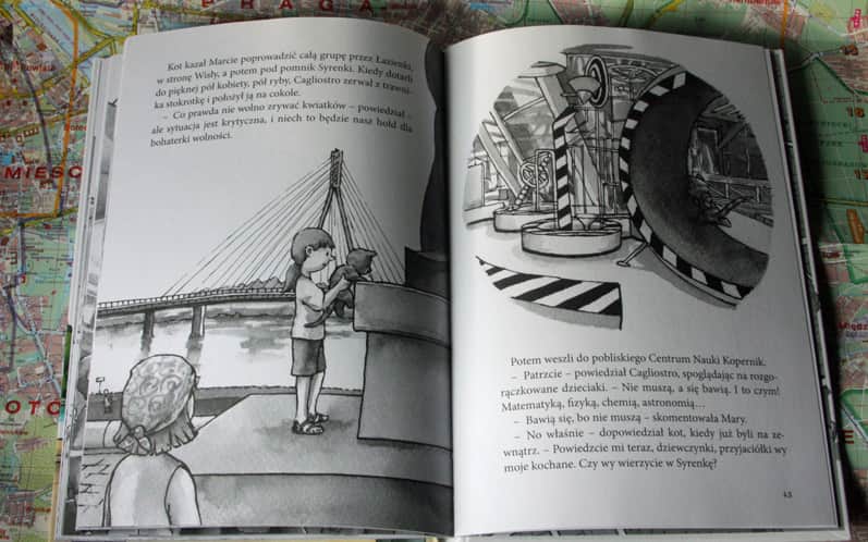 Jeżeli Wy również macie ochotę odwiedzić ten niezwykły świat zapraszamy do lektury „Syreniego śpiewu” oraz całej serii przygód detektywem i kota Caligostro! (nasza recenzja opowiadanie o kolejnej wizycie detektywek w Warszawie, tym razem w Parku Łazienkowskim: DZIEWCZYNY Z RYCINY.