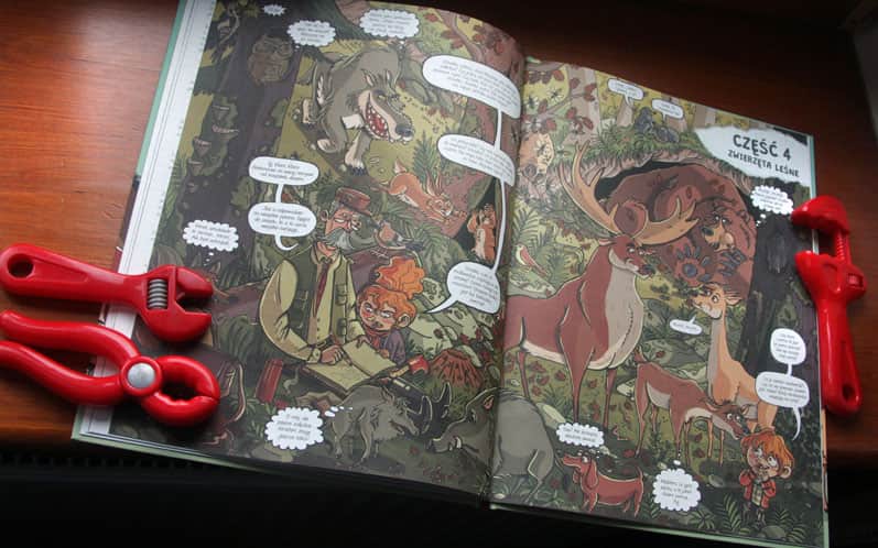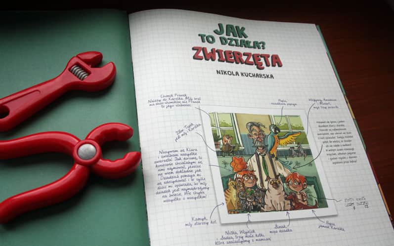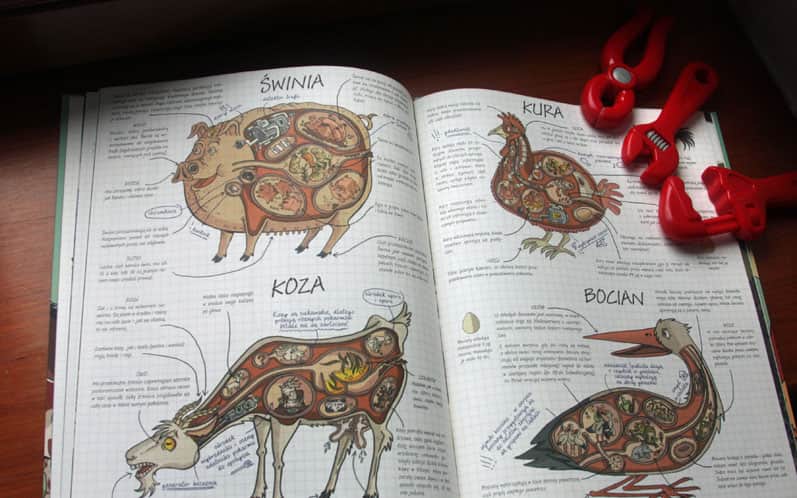 Książka Nikoli Kucharskiej nie poraża objętością: to niby tylko 32 strony, ale wiedzy (i to takiej która na pewno zostanie w głowie i wyobraźni najmłodszych!) jest dużo, dużo więcej. Treść książki jest przedstawiona w zabawnych komiksowych dymkach, ale przede wszystkim w pomysłowych… „schematach wewnętrznych”.
