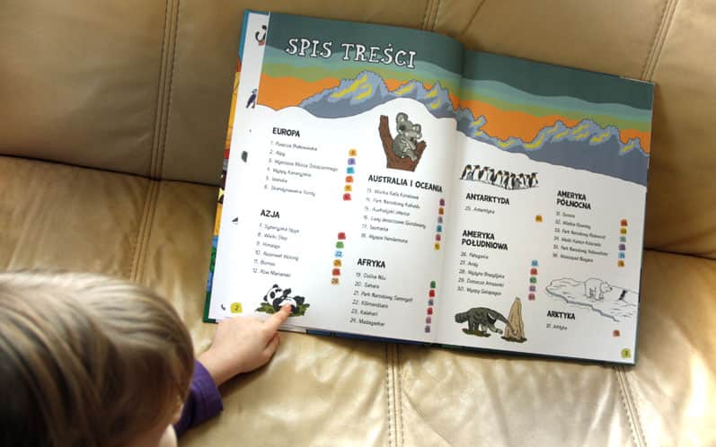 „O rety! Przyroda świata” to już wielka, daleka podróż, której mapę znajdziemy na samym początku książki, jako uzupełnienie spisu treści: