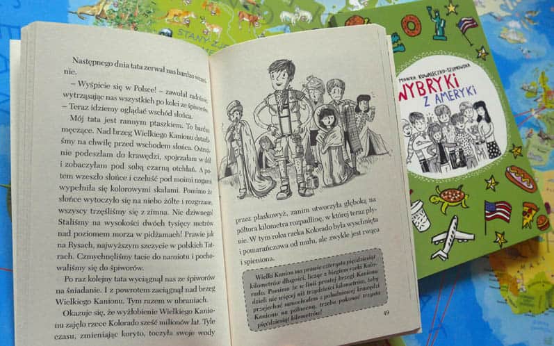 Narratorka, najmłodsza z rodzeństwa: Zosia, opowiada nam o wyjeździe do Stanów Zjednoczonych Ameryki Północnej. W krótkich rozdziałach – „migawkach z podróży” – przy okazji śledzenia przygód rozbrykanego rodzeństwa poznamy parę angielskich słów i zwrotów (uwaga: bez tłumaczenia!), ale przede wszystkim odwiedzimy kilka niezwykłych miejsc: m.in. Zatokę Meksykańską i Wielki Kanion rzeki Kolorado, zobaczymy sekwoje, na kempingu w Crater Lake National Park spotkamy niedźwiedzicę, a nawet zwiedzimy więzienie Alcatraz.