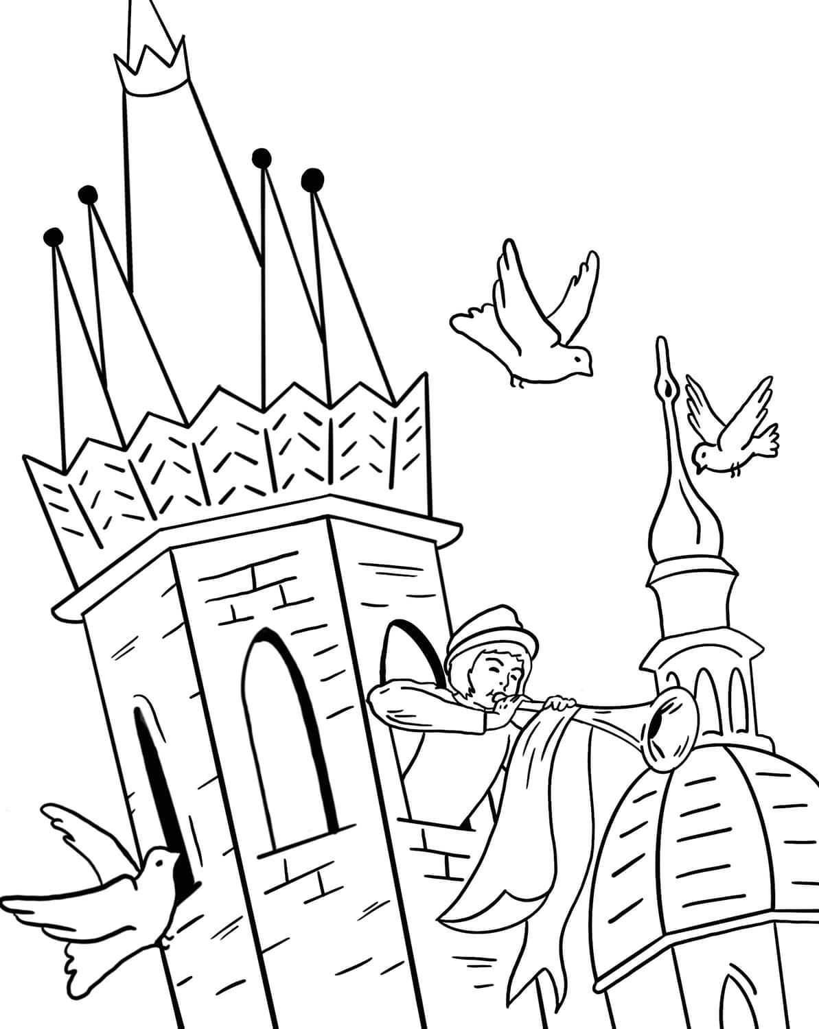 Kolorowanka dla dzieci hejnał mariacki pdf do wydruku