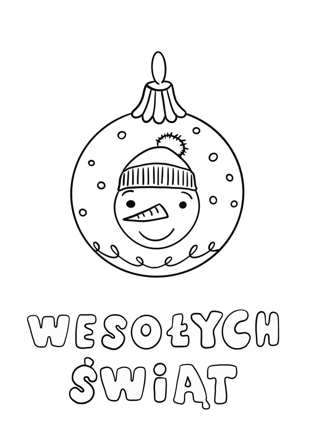Kartka świąteczna kolorowanka - bombka z bałwankiem