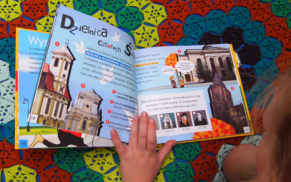 Dodatkową atrakcja są towarzyszące opisom miejsc zagadki i zadania do uzupełnienia, dzięki czemu młody odkrywca Wrocławia stanie się aktywnym uczestnikiem wyprawy.