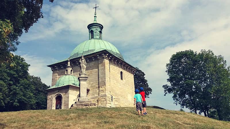 Sam Pińczów to bardzo przyjemne, leniwe miasteczko. Najciekawsze miejsce to chyba góra z piękną, renesansową kaplicą św. Anny, skąd roztacza się fantastyczny widok na dolinę Nidy. Z rynku spacerkiem jakieś 20 min. Samo podejście pod górę to wąska, bardzo stroma ścieżka (wózek odpada), ale można też podjechać pod kaplicę okrężną drogą samochodem.