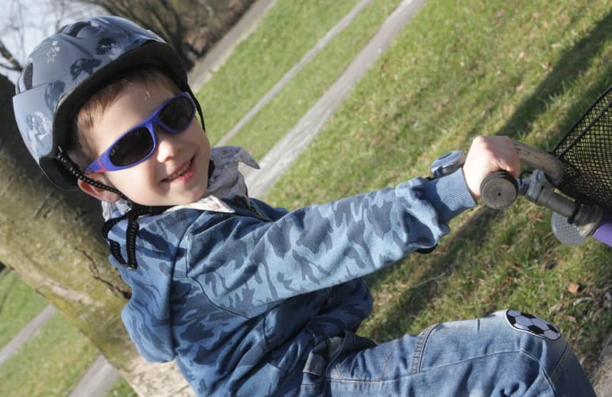 W okulary przeciwsłoneczne warto zaopatrzyć też małych kierowców rolek, rowerów, hulajnóg - jazda pod słońce może być dla nich męcząca, a droga, podobnie jak w przypadku kierowcy samochodu, mniej widoczna.