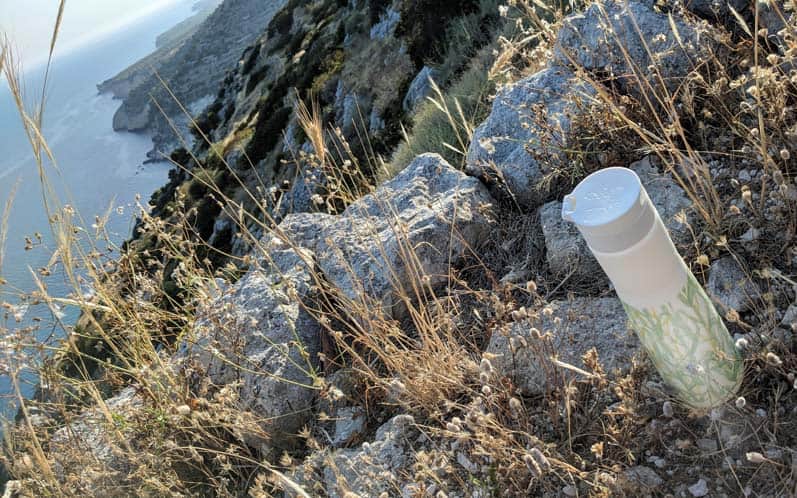 Butelki RETAP 0,3 (nr 1 na zdjęciu), RETAP 0,5 (nr 3) oraz bidon MB ACTIVE 0,5 (nr 4) wykonane są ze szkła borowo-krzemowego (przy identycznej objętości najcięższa będzie trochę lżejsza niż ta ze stali nierdzewnej). Specjalne cienkie, ale trwałe szkło, dla bezpieczeństwa jednak lepiej „ubrać” w tekstylne etui (nr 3) lub silikonową opaskę (nr 4). Najtrwalsze są wykonane ze stali nierdzewnej butelki RAGSY 260 ml (nr 2) i RAGSY 750 ml (nr 6), utrzymają temperaturę napoju. Butelka YUHME (nr 5) to całkowita nowość: wyprodukowana w 100% z trzciny cukrowej, co istotne dla środowiska: ma ujemny ślad węglowy i w pełni może być poddana recyklingowi. A co ważne dla nas: jest niesamowicie lekka: tylko 86 g!