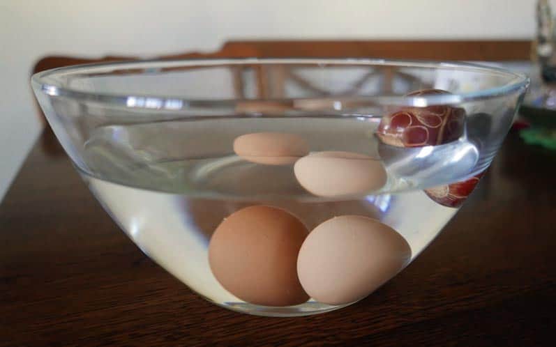 Potrzebujemy: miskę z wodą, świeże jajko i jajko nieświeże. Skąd wziąć nieświeże jajko? Można schować jedno np. miesiąc wcześniej. Kto nie chce tyle czekać (i marnować jajka) może np. wykorzystać zeszłoroczną pisankę (nie wydmuszkę!).