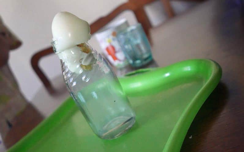 PS. Pamiętajcie, żeby jajko dobrze dolegało do brzegów szyjki butelki, inaczej powietrze znajdzie drogę bokiem!
