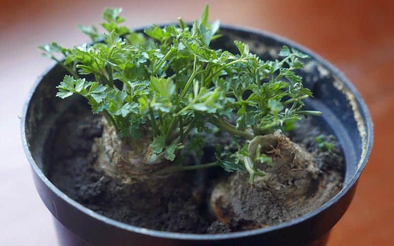 Czasem warto wykorzystać "gotowy" korzeń czy bulwę (co powiecie np. na kwiaty ziemniaka na parapecie?). Po naszych niedawnych doświadczeniach z hodowlą świeżej natki pietruszki (której zjadamy regularnie spore ilości) najlepiej sprawdził się sposób z włożeniem do ziemi całego korzenia (tak, aby wystawała końcówka), lub nawet tylko samej jego górnej części: 2-3 cm kawałek:
