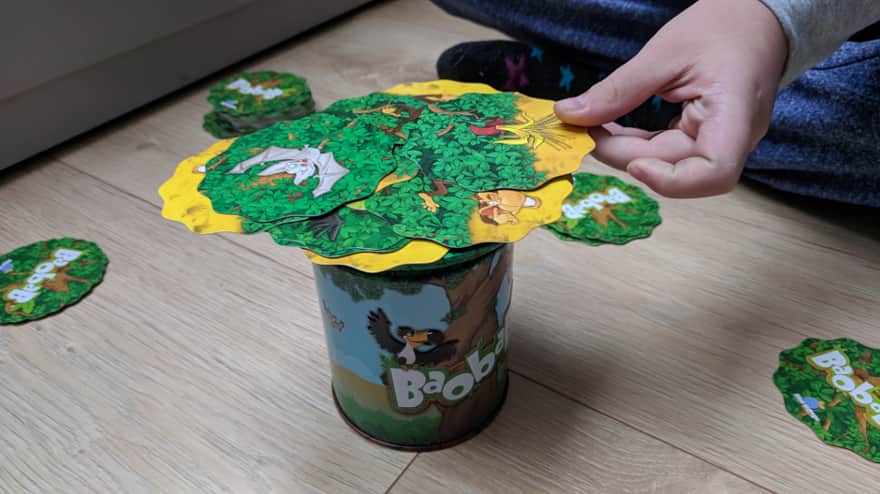 Musimy to robić w odpowiedni sposób - tak, by z drzewa nie strącić innych kart. Każdą z nich dodatkowo trzeba w odpowiedni sposób położyć: np. liście - umieszczamy w dowolnym miejscu, kwiaty na krawędzi korony drzewa, lamparty ciskamy na koronę z wysokości około 30 cm nad baobabem, a nietoperze upuszczamy z zamkniętymi oczami.Ten z graczy, który umieści na koronie drzewa swoją ostatnią kartę wygrywa grę.