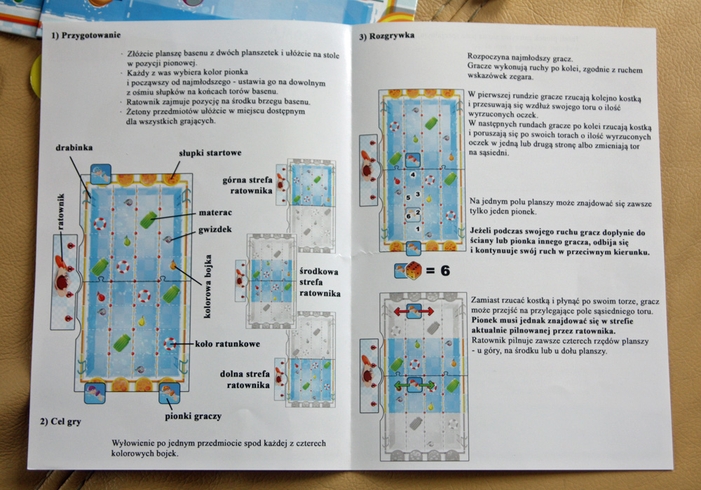 Celem gry jest zdobycie („wyłowienie”) 4 boj – po jednej z każdego toru pływackiego. O ruchach decyduje rzut kostką, ale gra uczy także kombinowania i podejmowania decyzji – można poruszać się po torze w dwie strony, odbijać się od brzegów basenu i innych uczestników, przesuwać ratownika, w odpowiednich warunkach zmieniać tor. Uczestnicy mogą się nawzajem blokować – im więcej grających „pływających” tym gra ciekawsza i trudniejsza (i dłużej trwa).