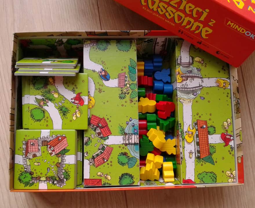 Wykonanie: Jakość wykonania bdb, kwadratowe karty (kafelki) do budowy planszy wykonane są z bardzo grubej tektury, drewniane ludziki.