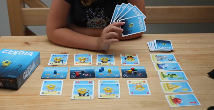 Cała głębia “Głębi” to właśnie jej bardzo ciekawa mechanika - grając możemy bowiem dokładać karty nie tylko po swojej stronie, ale także po stronie przeciwnika! Niech idzie z harpunem na gumową kaczuszkę, a co!