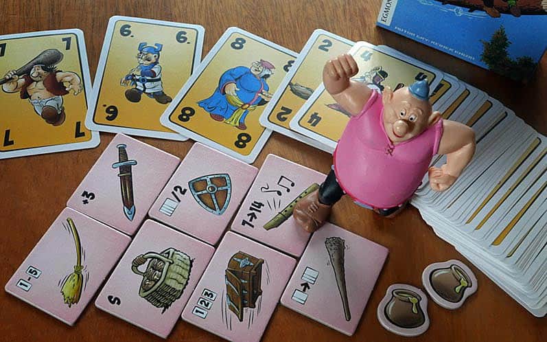 W bardzo zgrabnym, niewielkim pudełku (13 x 13 x 4 cm) znajdziemy: kartonowe figurki aż 12 postaci oraz 70 kart (+jedna bonusowa). Karty podzielone są na 10 przygód, odpowiadających różnym tytułom komiksów. W każdej z nich znajdziemy zarówno przedmioty, związane z akcją komiksu: droższy za 10 dukatów i tańsze za 5 dukatów, monety oraz karty z czarnymi charakterami: zbójcerzami, podstępnym szambelanem i rozbójnikiem z Jomsborga.