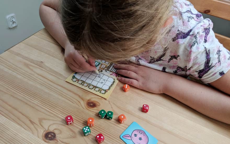 Podobał nam się podział na warianty gry - prosty i zaawansowany, który w rzeczywistości również jest bardzo prosty, ale zmiany wpływają już na mechanikę gry. W wariancie zaawansowanym po zapełnieniu rzędu karmienia świnki możemy nie tylko zmienić ilość wyrzuconych oczek, ale także kolor kostki i zamiast np. marchewki zasadzić pomidora. Kolejną istotną zmianą są ceny danego warzywa na ryneczku - w wariancie podstawowym każde warzywo jest warte minimum jeden punkt, w wariancie zaawansowanym cena rynkowa zaczyna się od zera - możemy więc sadzić warzywa za które nic nie dostaniemy!