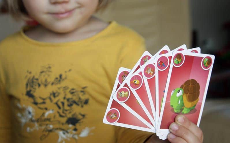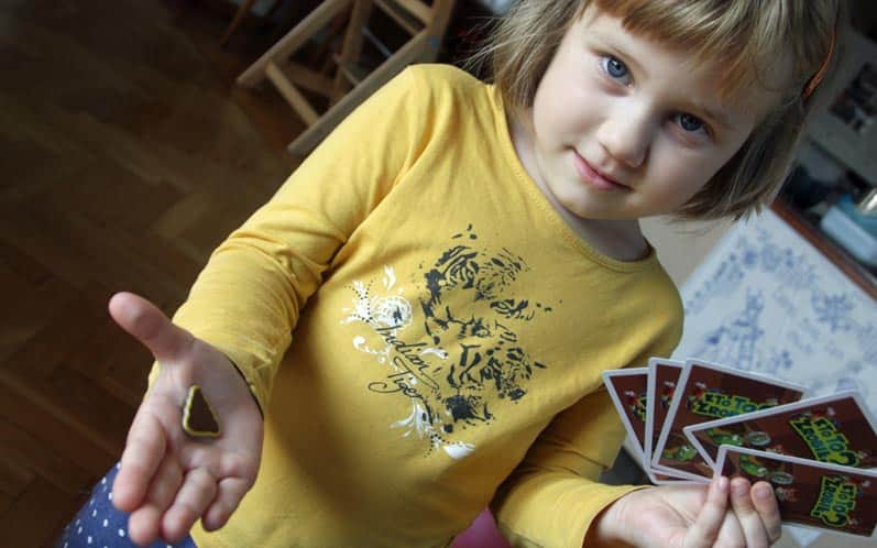 Wiek 6+ (bawić się mogą już młodsze dzieci, nawet 4-5-latki, które potrafią utrzymać wachlarzyk z 6 kart. Najwyżej potraktujemy grę nie tyle pamięciowo, co losowo, albo troszkę im podpowiemy, kto jeszcze siedzi w naszych dłoniach :)