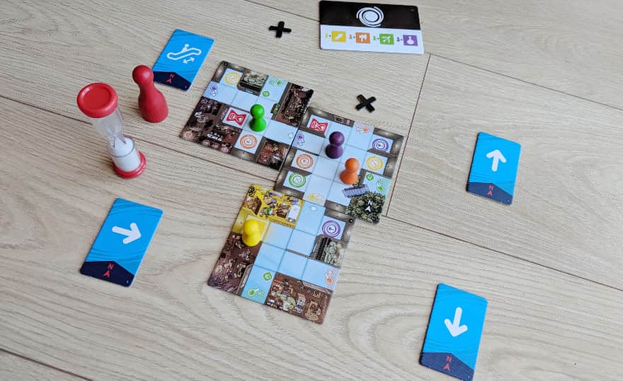 Na początku gry mamy kafelek startowy, na którym stoją 4 pionki postaci. To moment, kiedy możemy wszystko obgadać, zaplanować, gdy już wtargniemy do sklepu (obrócimy klepsydrę) wszystko dzieje się błyskawicznie!