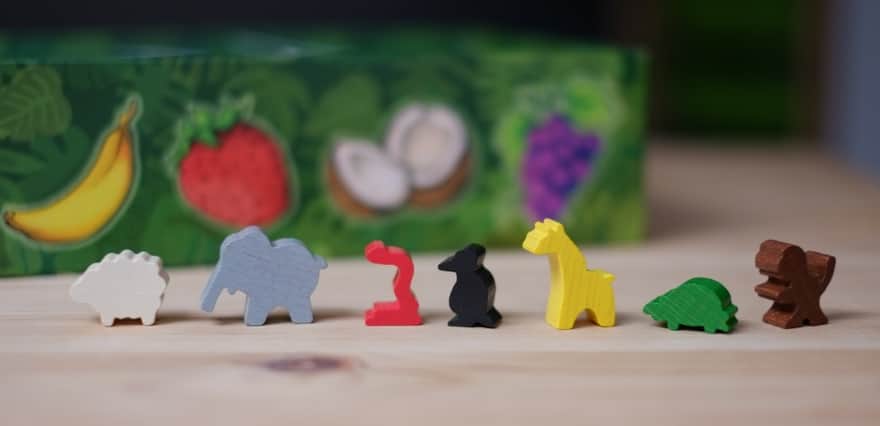 W grze mamy karty miejsca, które tworzą planszę. Przy pierwszej rozgrywce jest to 6 różnych stosów kart tworzących 6 pól, na których możemy położyć nasz pionek – drewniane zwierzątko.