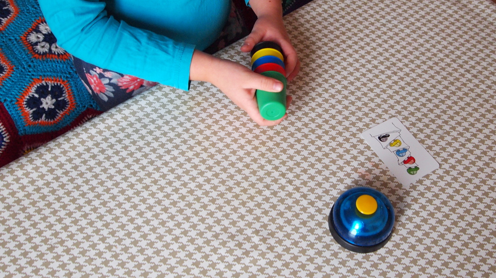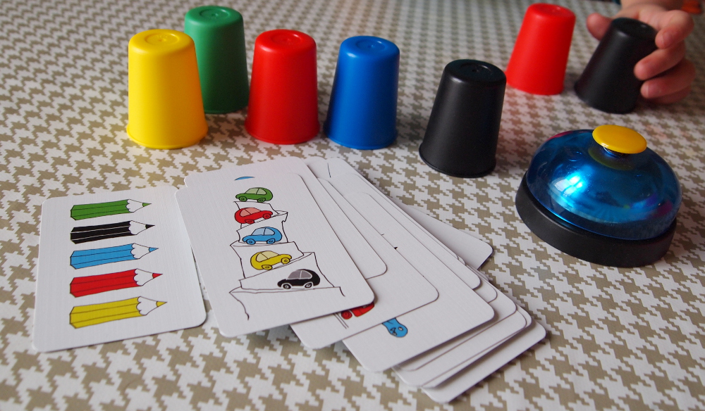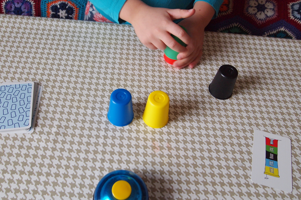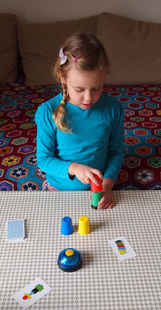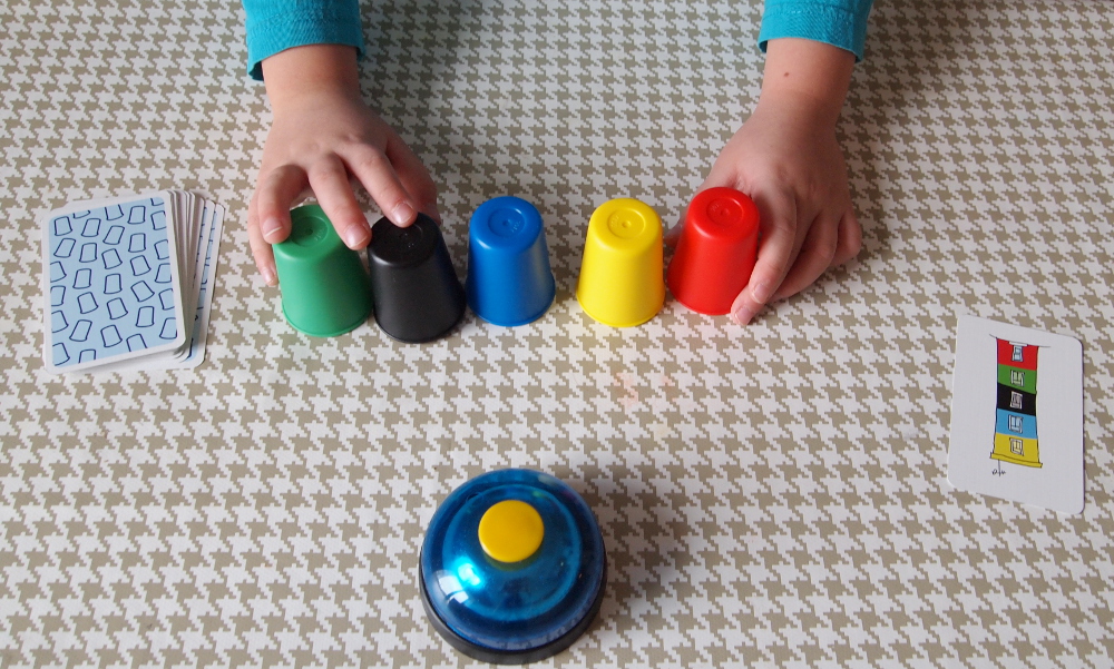 Zasady gry: zadaniem graczy jest jak najszybsze ułożenie kubeczków kolorami według wzoru z wylosowanej karty. Gracz, który zrobi to jako pierwszy wciska dzwonek i jeśli poprawnie rozwiązał zadanie otrzymuje dana kartę. Wygrywa gracz, który zbierze najwięcej punktów - kart.