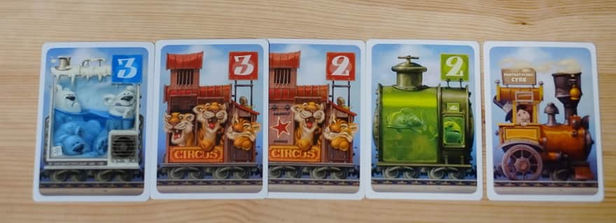 Jak sami widzicie, chociaż zasady są proste rozgrywka jest ciekawa i niebanalna - wymaga zastanowienia się, kombinowania, oszacowania czy lepiej nam sięgać po wagoniki z większą liczbą zwierząt, czy raczej wybierać te “tańsze” przewożące jednego pasażera. Do wagoników z większą ilością zwierząt dużo trudniej bowiem potem doczepić kolejny wagonik.