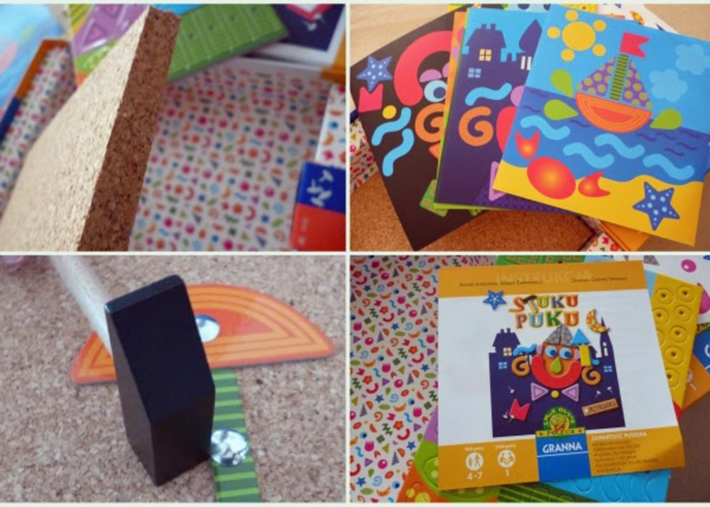 Elementy do przybijania wykonane są z grubego kartonu, są bardzo kolorowe i dwustronne. Korkowa plansza jest gruba, nie ma możliwości, że dziecko przebije ją pinezką na wylot i się pokaleczy. Dobrym pomysłem byłoby dołączenie do zestawu dodatkowej planszy korkowej, ponieważ dziecko nie zawsze chce burzyć swoje dzieło.
