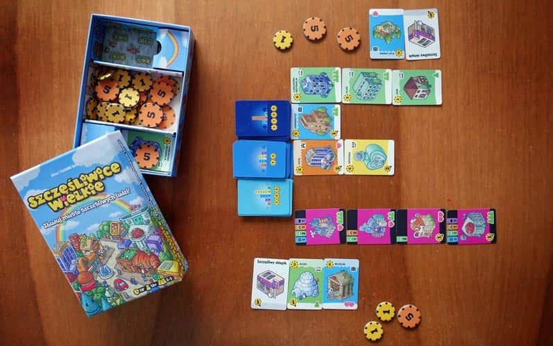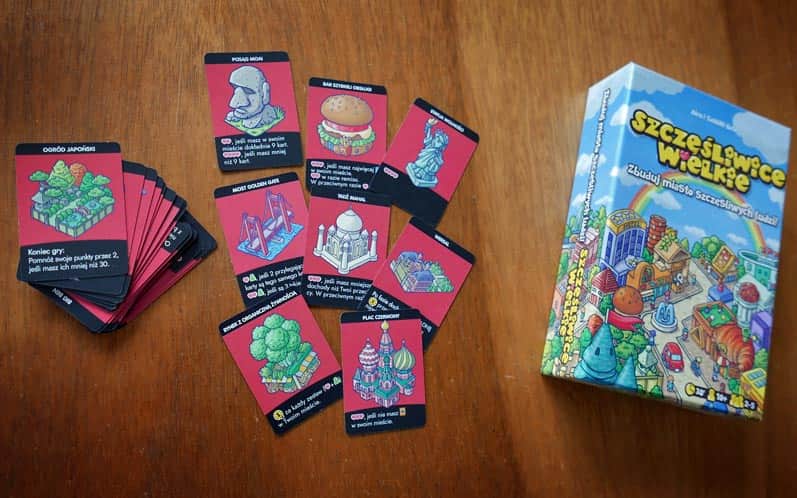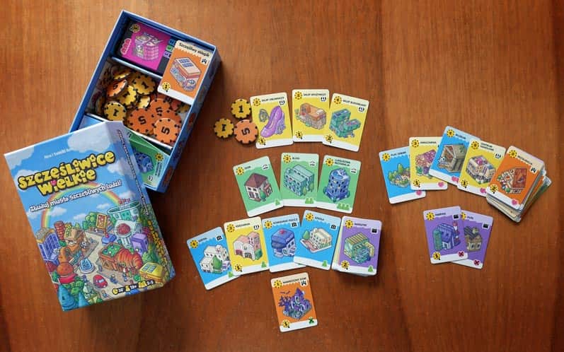 Możemy też spróbować rodzinnie budować wspólne miasto: każdy ma swoje pieniądze, dokonuje swoich zakupów, ale karty dokłada do wspólnego miasta (dochody proponujemy też każdemu wypłacać osobno). Ustalamy sobie limit kart w mieście, np. 20 i podliczamy wspólnie zdobyte punkty szczęśliwości - możemy pobijać własne rekordy.