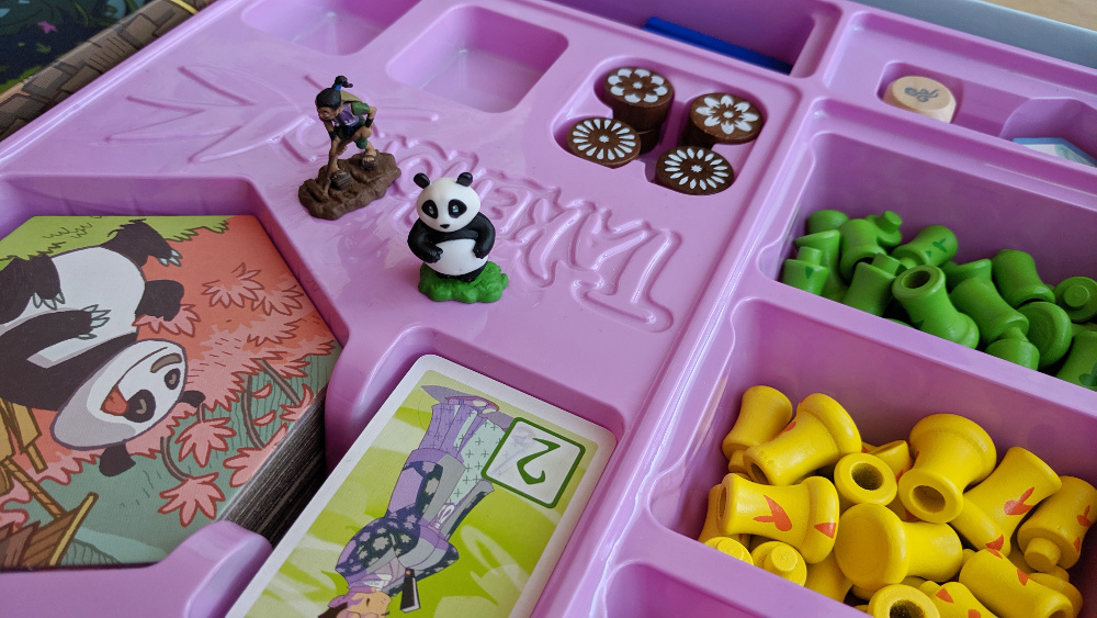 Już samo otwarcie pudełka z grą robi na nas DUŻE wrażenie - zawartość wykonana jest z dbałością o szczegóły - drewniane znaczniki i bambusowe pędy, malowane figurki ogrodnika i misia, wszystko prezentuje się orientalnie, pięknie.