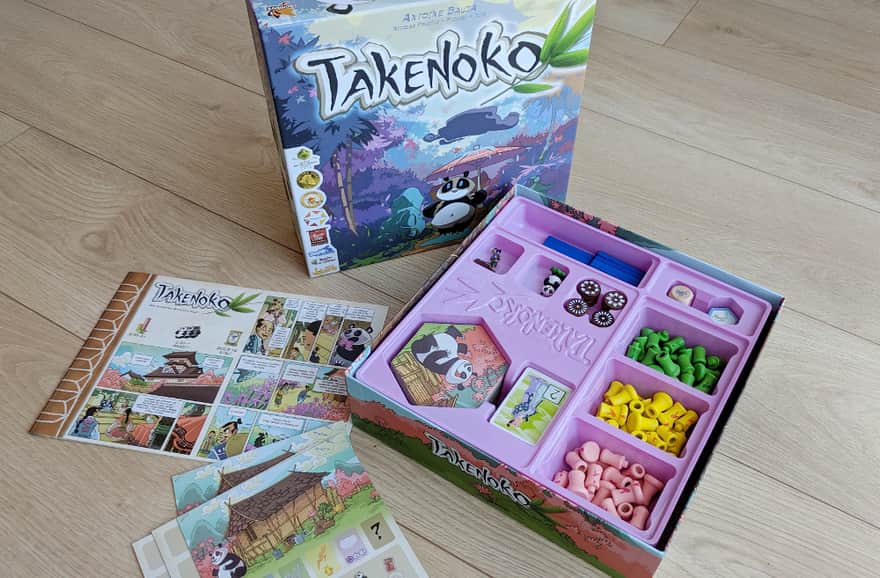 Gra Takenoko broni się jednak nie tylko atrakcyjnym wyglądem, ale przede wszystkim ciekawą, wciągającą mechaniką - oczywiście jest to gra rodzinna, mamy tu duży element losowości, ale gra się bardzo, bardzo przyjemnie (a mówią Wam to osoby, których losowość gier drażni wyjątkowo). Cała rozgrywka mija bowiem lekko, humorystycznie. Jest dużo możliwości wyboru, myślenia, kombinowania, wybrania taktyki. Jak na grę dla dzieci - zasady i możliwości taktyczne nie są wcale takie trywialnie proste, zaliczyłabym ją raczej do gier rodzinnych średnioskomplikowanych i poleciłabym rodzinom, które pierwsze pudełka z grami mają już za sobą. Instrukcja na początku może trochę przytłoczyć (zwłaszcza tych początkowych graczy), ale wszystko w przejrzysty sposób wyjaśnia nam filmik wydawnictwa zamieszczony na kanale youtube.