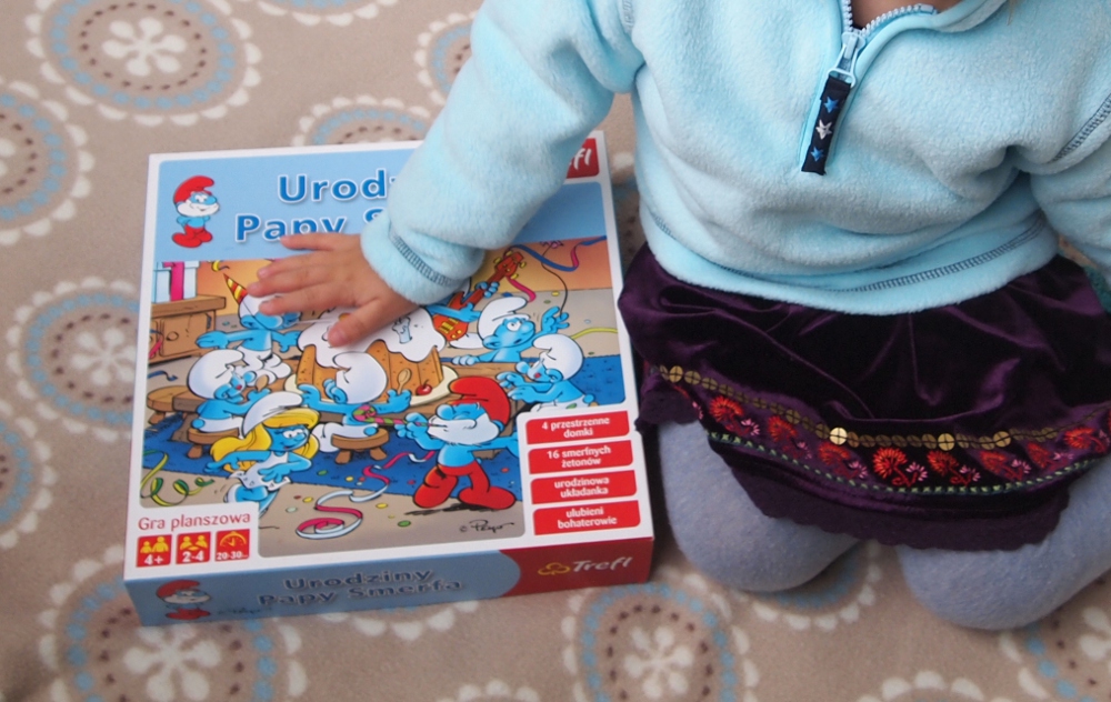 Wiek dziecka: W grę zaczęliśmy grać, gdy córka miała około 4 lat (uwielbiała smerfy), ale zasady były jeszcze za trudne dla tak małego dziecka. O co chodzi w grze zaczeła łapać mniej więcej mając 4,5 roku a w wieku 5 lat już sobie świetnie radzi.