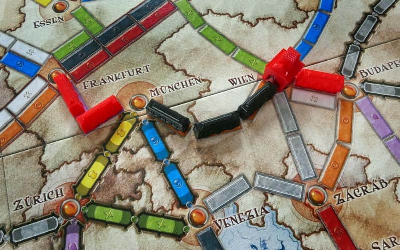 Aby ułożyć swój pociąg między dwoma miejscami musimy „zapłacić” kartami wagonów w odpowiednim kolorze i odpowiedniej ilości (tęczowa lokomotywa pełni funkcję jokera). Jeśli układamy połączenie promowe lokomotywa (lub nawet dwie) będzie obowiązkowa, w przypadku tuneli może się okazać, że potrzebujemy dodatkowych wagonów w danym kolorze.