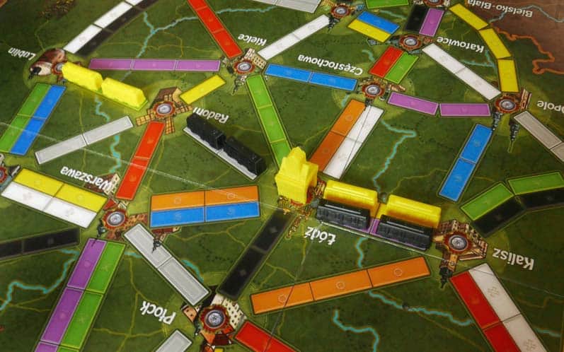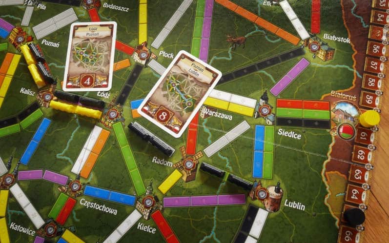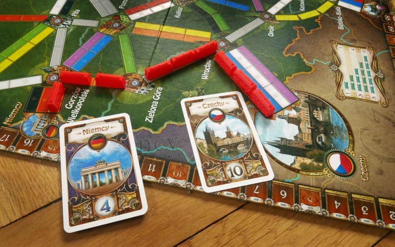 Na początek każdy z graczy otrzyma bilety, które będzie się starać zrealizować w czasie rozgrywki. W zależności od długości trasy bilety są różnie punktowane. Jeśli w pierwszym rozdaniu trafiły nam się krótkie „tanie” trasy możemy w kolejnych ruchach wylosować nowe bilety i zwiększyć swoje szanse na spory zastrzyk punktów na koniec gry.