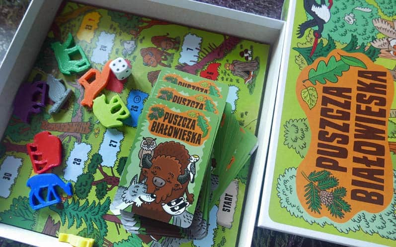 Gra PUSZCZA BIAŁOWIESKA wydana przez Starostwo Powiatowe w Hajnówce we współpracy z Tomaszem Samojlikiem i Oficyną Multico to sprytne połączenie klasycznej przygodowej planszówki z quizem wiedzy o Puszczy, jej historii i niezwykłych mieszkańcach.