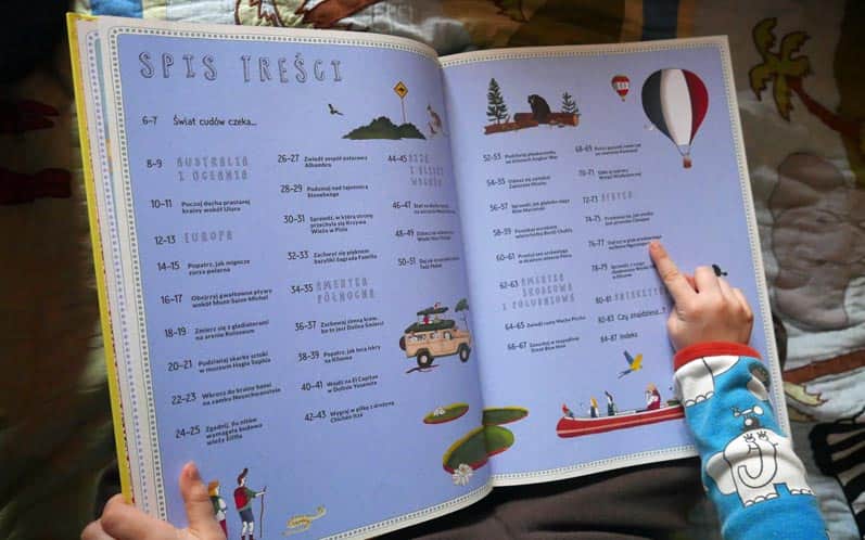 Zadania do wyszukiwania znajdziemy też na końcu książki - będzie to kilka postaci lub rzeczy do odnalezienia na konkretnych stronach atlasu. W większości miejsc odnajdziemy też parę ciekawych świata turystów: