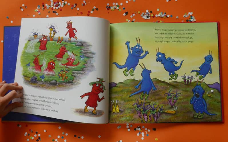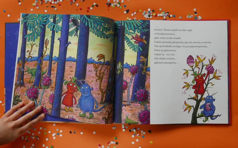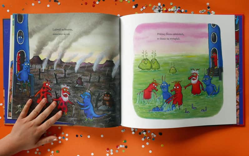 Na kartach książki poznamy niezwykłą planetę tytułowych Ćmonów i Smeśków, ich "blejorko" i "spadziurek" oraz rosnące w Orzutberetemlesie "drzable" i "glompomki" (mimo, że pierwsza głośna lektura nie będzie łatwa wkrótce docenimy słowotwórczy kunszt tłumaczki - dzieciaki będą zachwycone!). Wyruszymy też w podróż na sąsiednie planety: tu czekają kolejne stworki i niezwykłe scenografie!