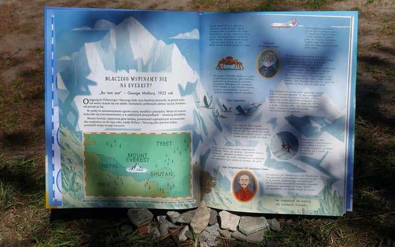 "O 11:30 rano 29 maja 1953 roku pszczelarz i były poganiacz jaków zrobili ostatnie kilka kroków na śnieżnej okrywie szczytu" - tak zaczyna się wprowadzenie do tej niezwykłej, bogato (i pięknie!) ilustrowanej książki. Ten moment sprzed prawie 70 lat (niewątpliwie przełomowy dla dziejów ludzkich osiągnięć) to tak jak w życiu: tylko jeden z dziesiątek tysięcy dni, w książce też zajmuje jedynie 2 z ponad 60 stron... Co znajdziemy na pozostałych?