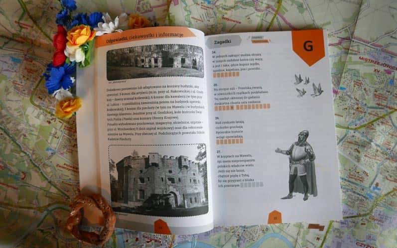 W nowej książce krakowskich autorek E. Stadtmuller i A. Chachulskiej (znanych m.in. z rodzinnego przewodnika po Krakowie pt. "Kraków i okolice") znajdziecie aż 119 zagadek i haseł do odgadnięcia. Pewnym ułatwieniem jest to, że ułożone są w kolejności alfabetycznej: od "A" jak arrasy i artyści po "Z" jak zegar na wieży ratuszowej, "Zielony Balonik" i zwierzyniec, czyli współczesne zoo.Każdy z rozdziałów rozpoczynają wierszowane zagadki. Jeśli uda się odgadnąć rozwiązanie, wpisujecie je w odpowiednie miejsce, jeśli nie: szukacie podpowiedzi (a także dodatkowych ciekawostek) w rozwiązaniach.