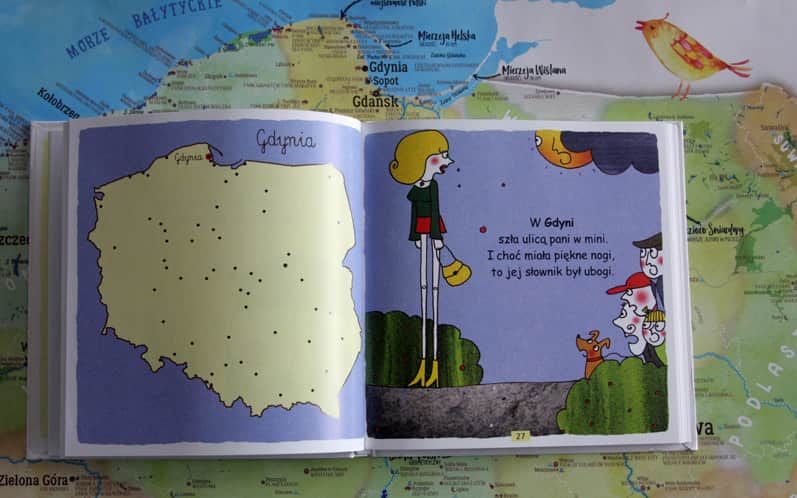 Szukacie elementu edukacyjnego? Po pierwsze być może dowiemy się o istnieniu wielu miejscowości, o których dotychczas nie słyszeliśmy. Po drugie: obok każdego wierszyka znajduje się mapa Polski z zaznaczonym miastem-bohaterem, dzięki czemu możemy zapamiętać nie tylko jego nazwę, ale i położenie.