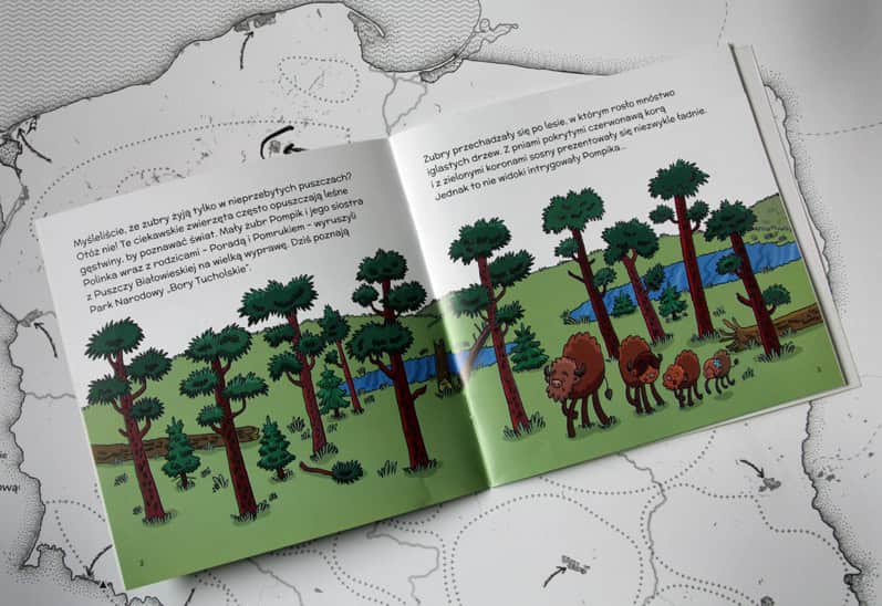 „Myśleliście, że żubry żyją tylko w nieprzebytych puszczach? Otóż nie! Te ciekawskie zwierzęta często opuszczają leśne gęstwiny, by poznawać świat” – takimi słowami zaczyna się każda z książeczek z serii „Żubr Pompik. Wyprawy”.