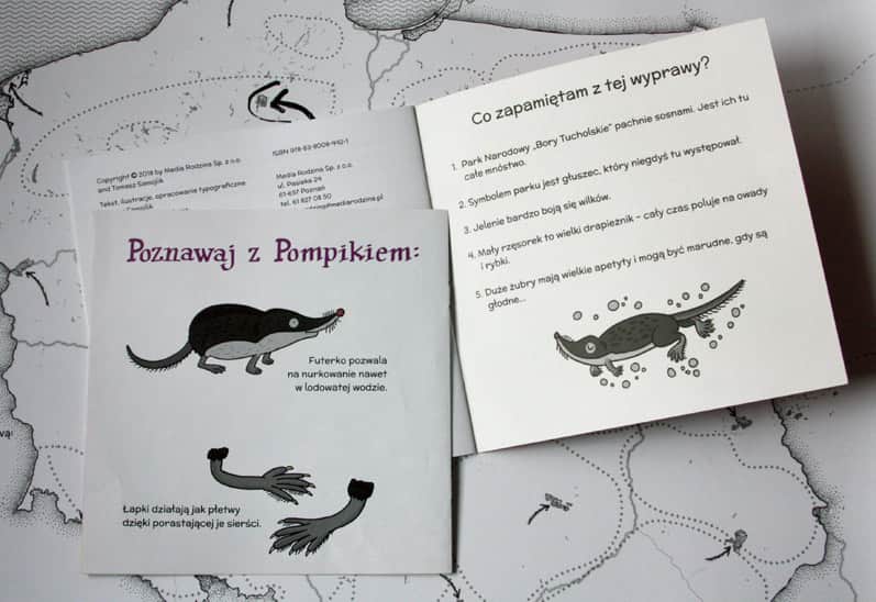 Czy poznaliście może na takim tle sportretowaliśmy WYPRAWY ŻUBRA POMPIKA? Tak, to wydana pod naszym patronatem MAPA POLSKI DLA DZIECI, a dokładniej jedna z jej kart edukacyjnych. Możecie na niej sami rozpoznać, zaznaczyć i podpisać Park Narodowy „Bory Tucholskie”. Jesteście gotowi na takie wyzwanie?