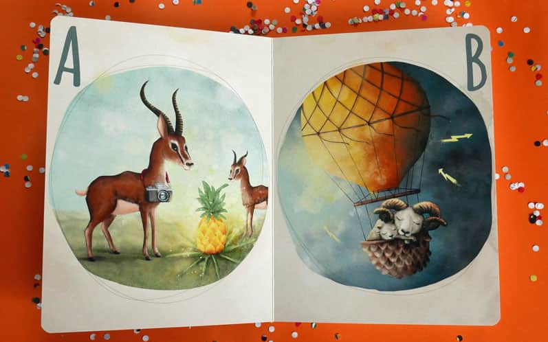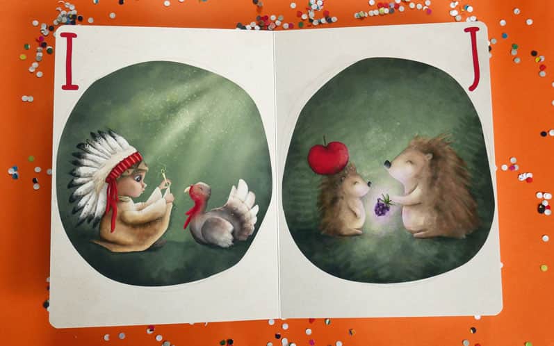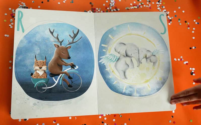 Alfabet Miłości to ponad 20 kartonowych stron z pięknymi i pełnymi ciepła ilustracjami, na których najważniejsza jest bliskość i miłość, sam alfabet wydaje się jedynie dodatkiem do głównego przesłania "elementarza":