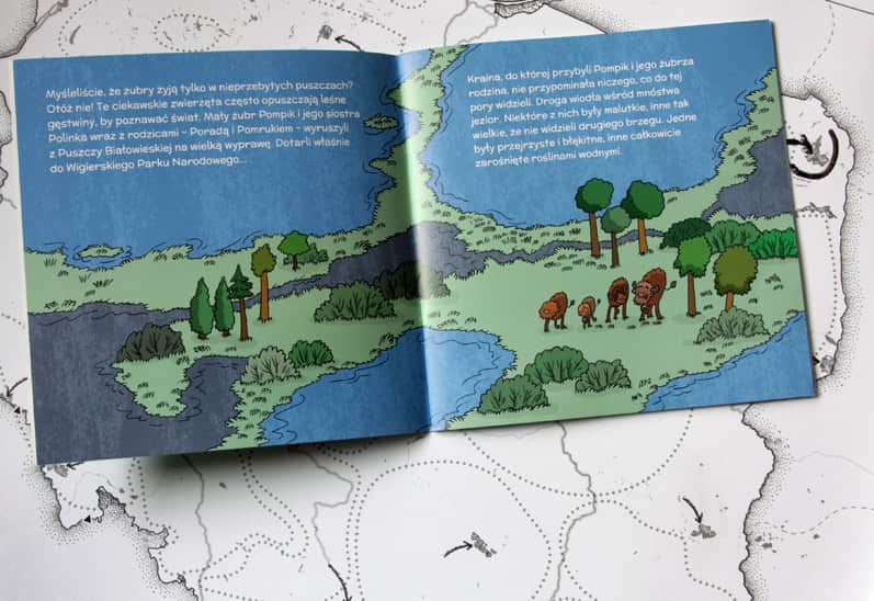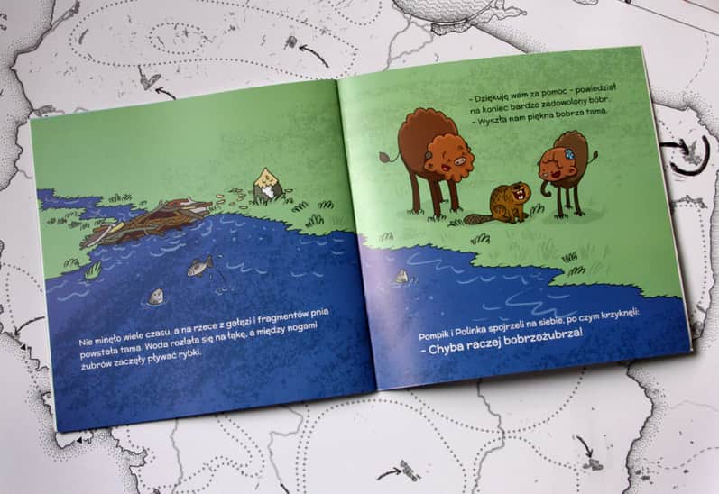 „Myśleliście, że żubry żyją tylko w nieprzebytych puszczach? Otóż nie! Te ciekawskie zwierzęta często opuszczają leśne gęstwiny, by poznawać świat” – takimi słowami zaczyna się każda z książeczek z serii „Żubr Pompik. Wyprawy”.