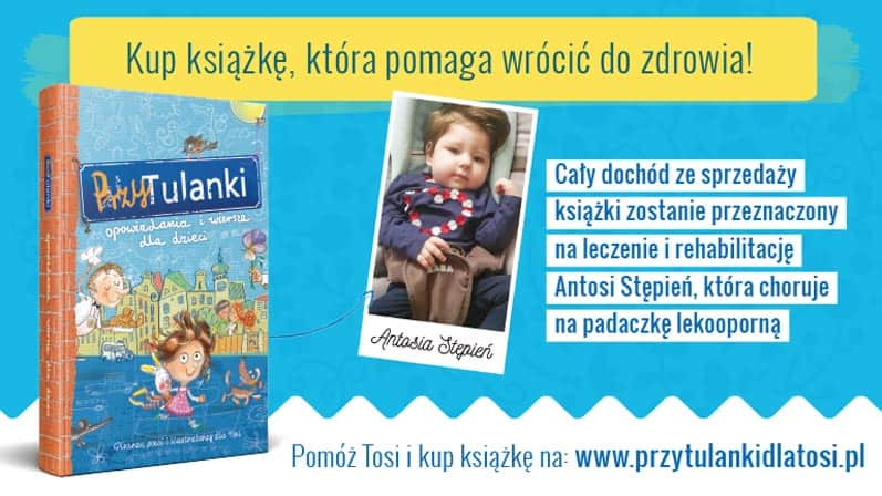 „PrzyTulanki” to niezwykły zbiór opowiadań i wierszy dla dzieci. Niezwykły, bo stworzony przez ludzi o wielkich sercach na rzecz rocznej Antosi Stępień, która choruje na padaczkę lekooporną. Pisarze, poeci i ilustratorzy przekazali swoją twórczość, nie pobierając żadnego honorarium, a pieniądze na druk książki zostały zebrane przez portal wspieram.to. Dystrybucją charytatywnie zajmuje się księgarnia internetowa Bonito.pl. Cały dochód ze sprzedaży książki zostanie przekazany na leczenie i rehabilitację Tosi – na jej konto w Fundacji Kawałek Nieba.