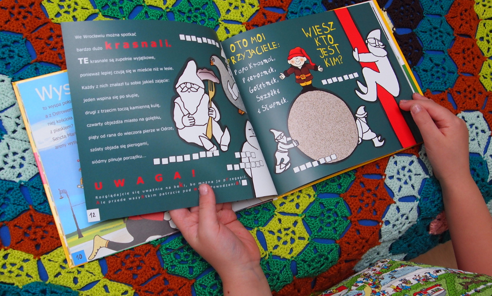 Dodatkową atrakcja są towarzyszące opisom miejsc zagadki i zadania do uzupełnienia, dzięki czemu młody odkrywca Wrocławia stanie się aktywnym uczestnikiem wyprawy.